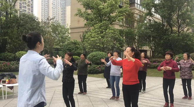 每天在物业人员的带领下学习各类健身操课程