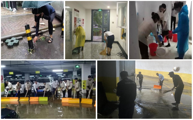 以雨为令,迅速出击,忠于职守。物业人胸怀责任与担当,昼夜坚守在一线,站好“安全岗”,筑牢“安全墙”,全力以赴做好防汛各项工作,确保住宅小区安全度汛。