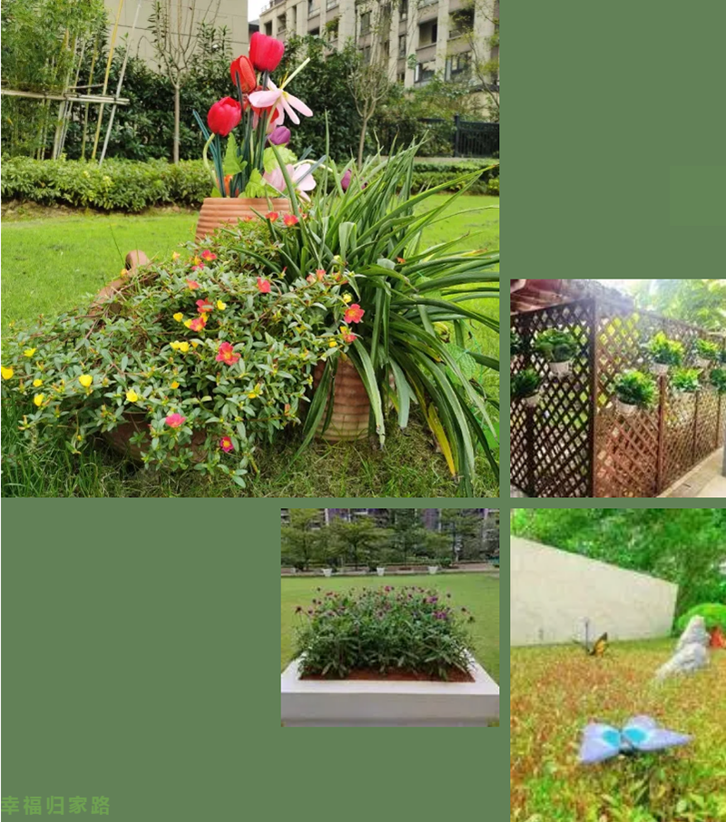 为提升园区绿化美观度,路劲物业利用应节时花与物品改造,匠心打造出低碳、靓丽的社区景观,装扮业主归家之路,为业主增添一份好心情。